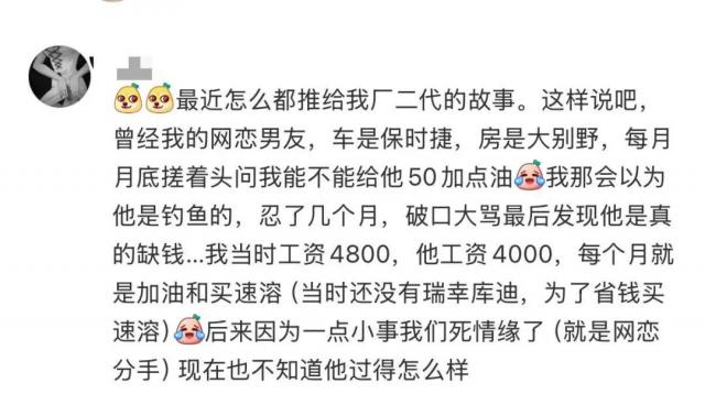有网友谈了个厂二代对象,一度怀疑是谈到杀猪盘了。
