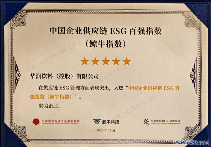 为期两天的会议还发布了《中国企业供应链ESG蓝皮书(2025)》暨“中国企业供应链ESG百强指数(鲸牛指数)”和2025年“ESG鲸牛奖”。华润饮料凭借在供应链ESG管理及ESG治理方面的优秀实践和成效富盈网,成功入选“中国企业供应链ESG百强指数(鲸牛指数)”,获评ESG鲸牛奖之“ESG治理先锋”。